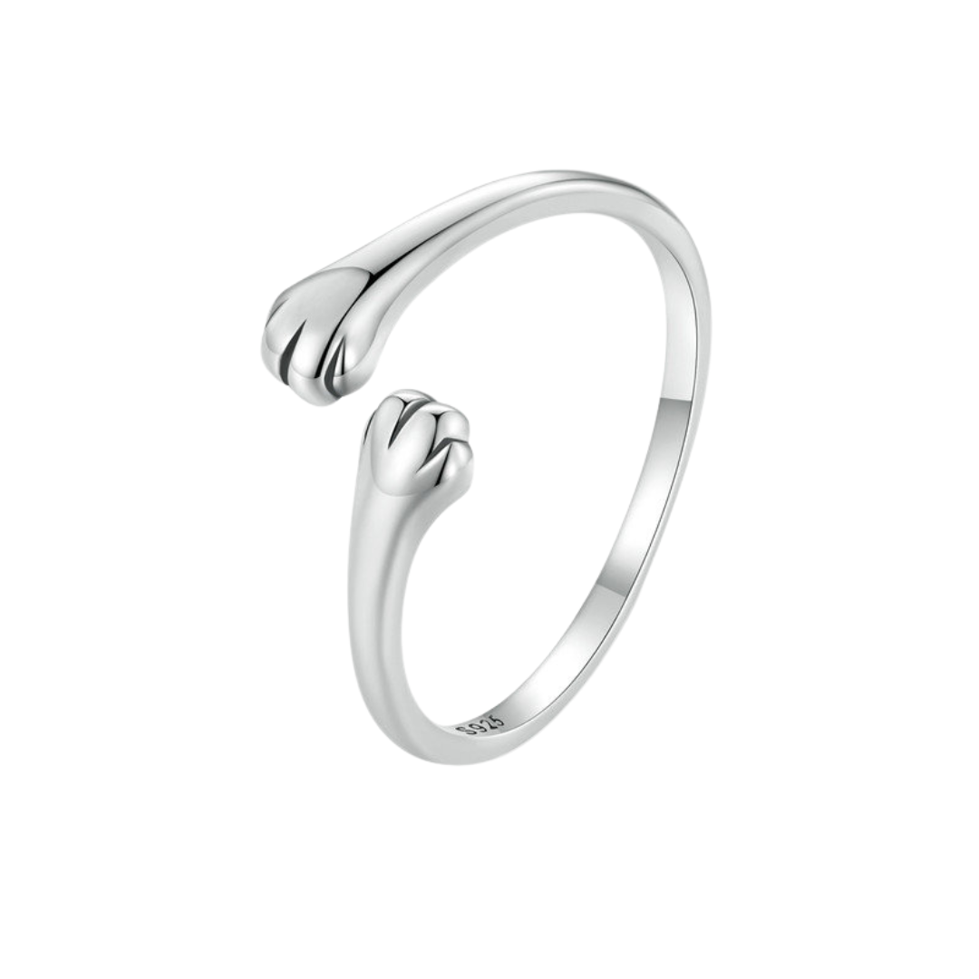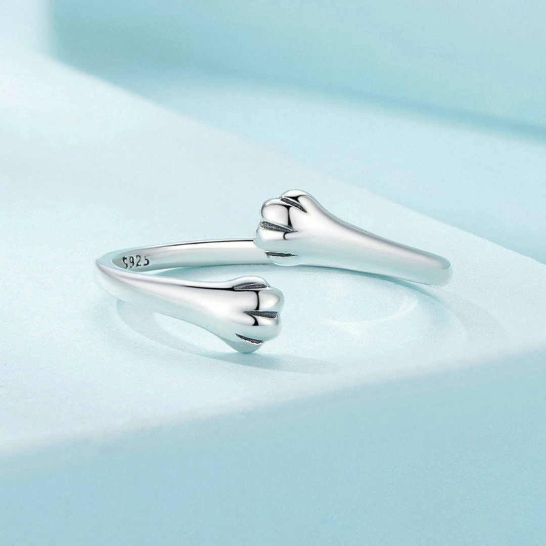 Fabricado em prata 925 com selo de autenticidade, possui formato aberto e se adapta facilmente ao dedo. Ideal para presentear tutores de pets ou usar como símbolo do amor pelos bichinhos.
