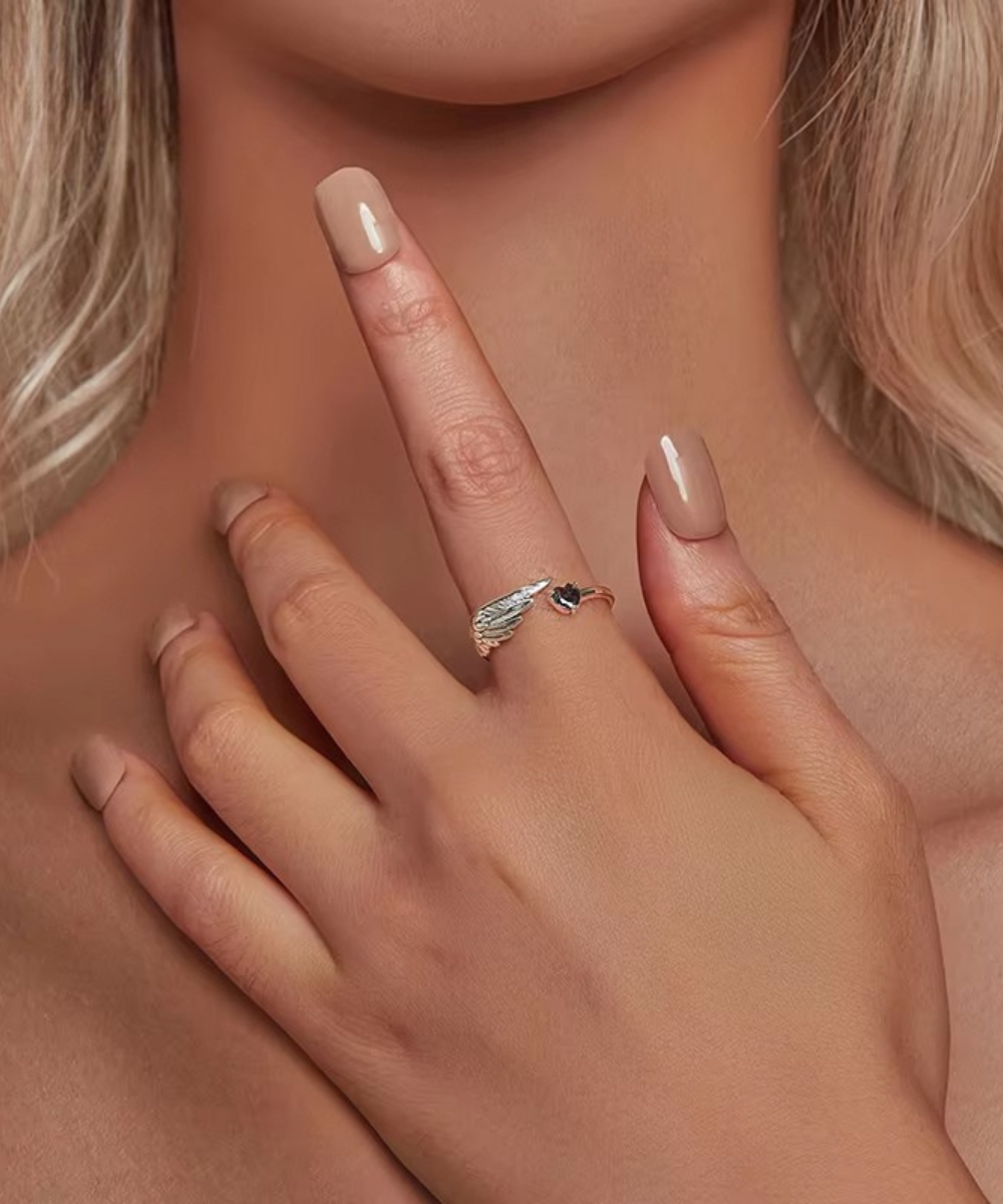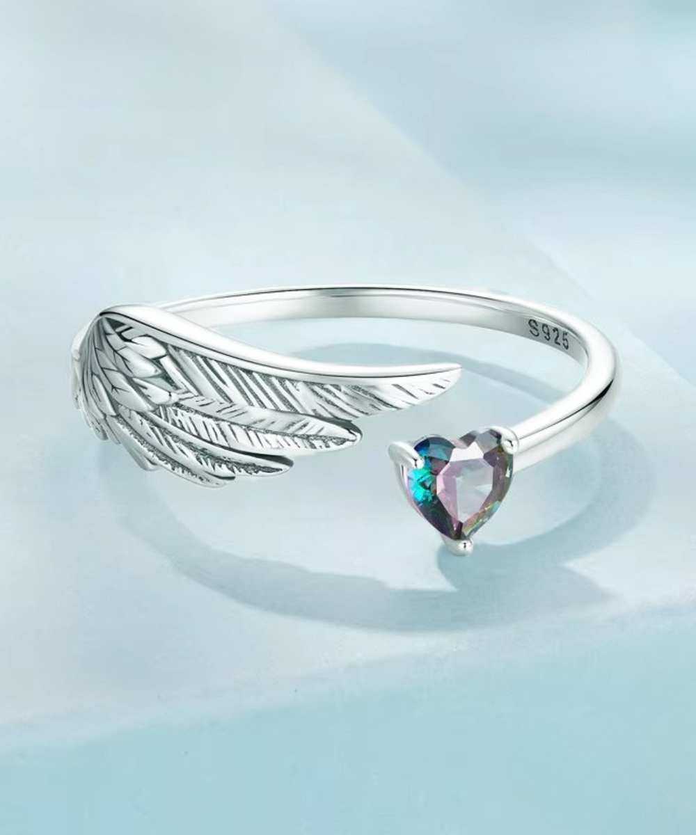Este anel encantador une dois símbolos poderosos: a asa e o coração. Representando liberdade, cuidado e conexão emocional, ele é a escolha perfeita para quem busca uma joia com significado profundo e visual delicado. Seu design aberto traz leveza e um toque romântico com a pedra em formato de coração.