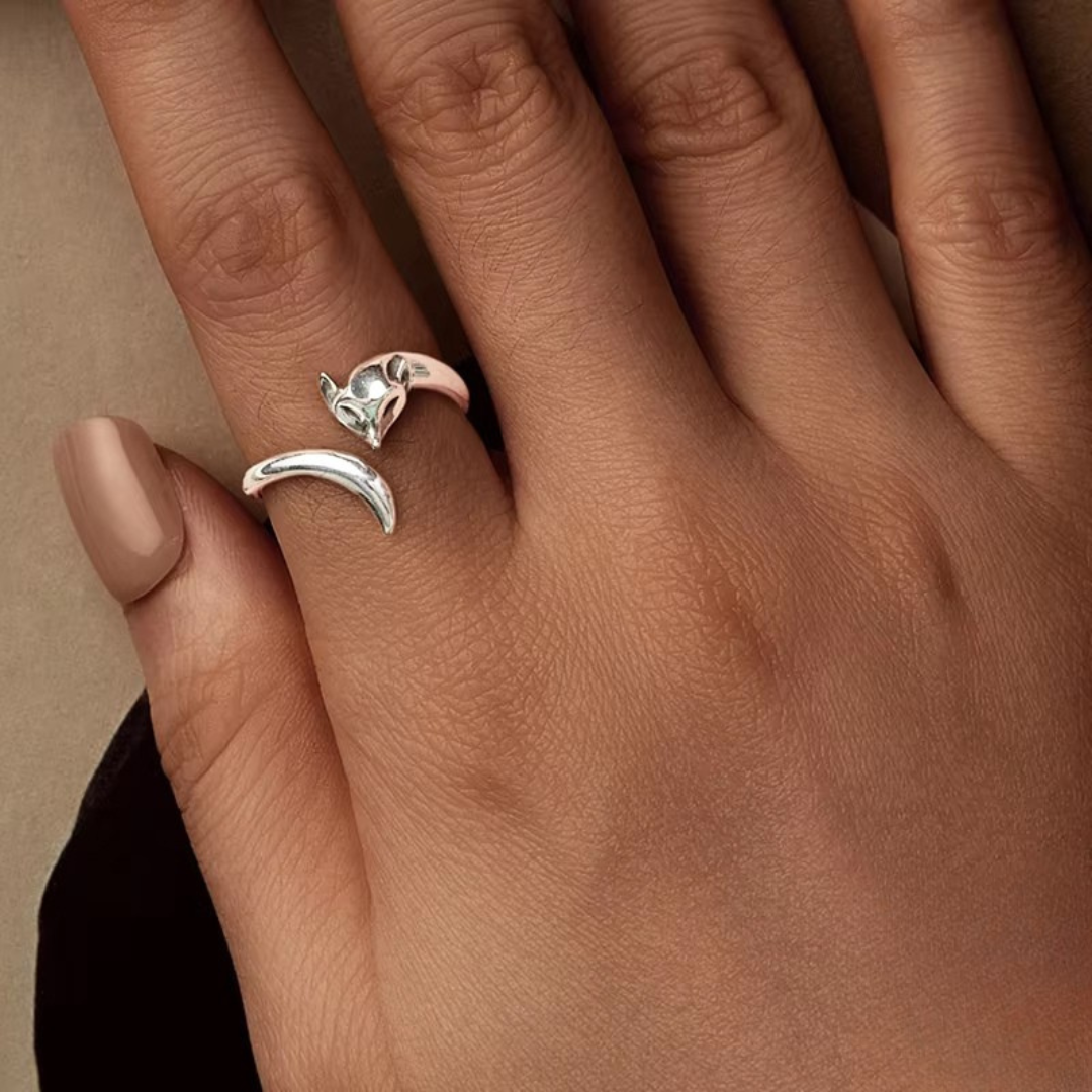 Com um design criativo e elegante, este anel representa a delicadeza e o mistério da raposa — símbolo de astúcia, beleza e liberdade.