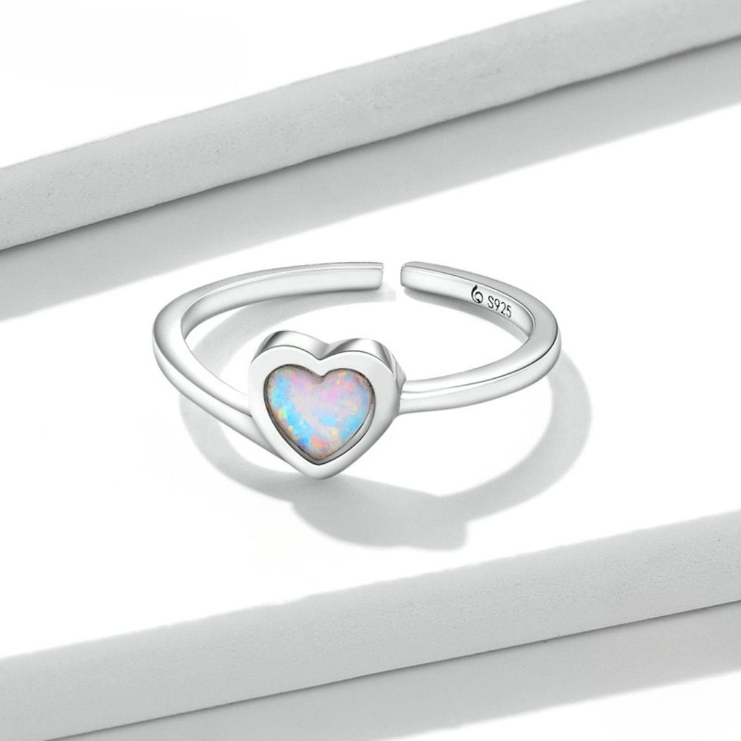 🔹 Anel Coração de Opala Prata 925 – Amor Suave e Atemporal