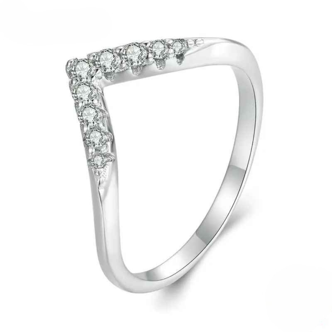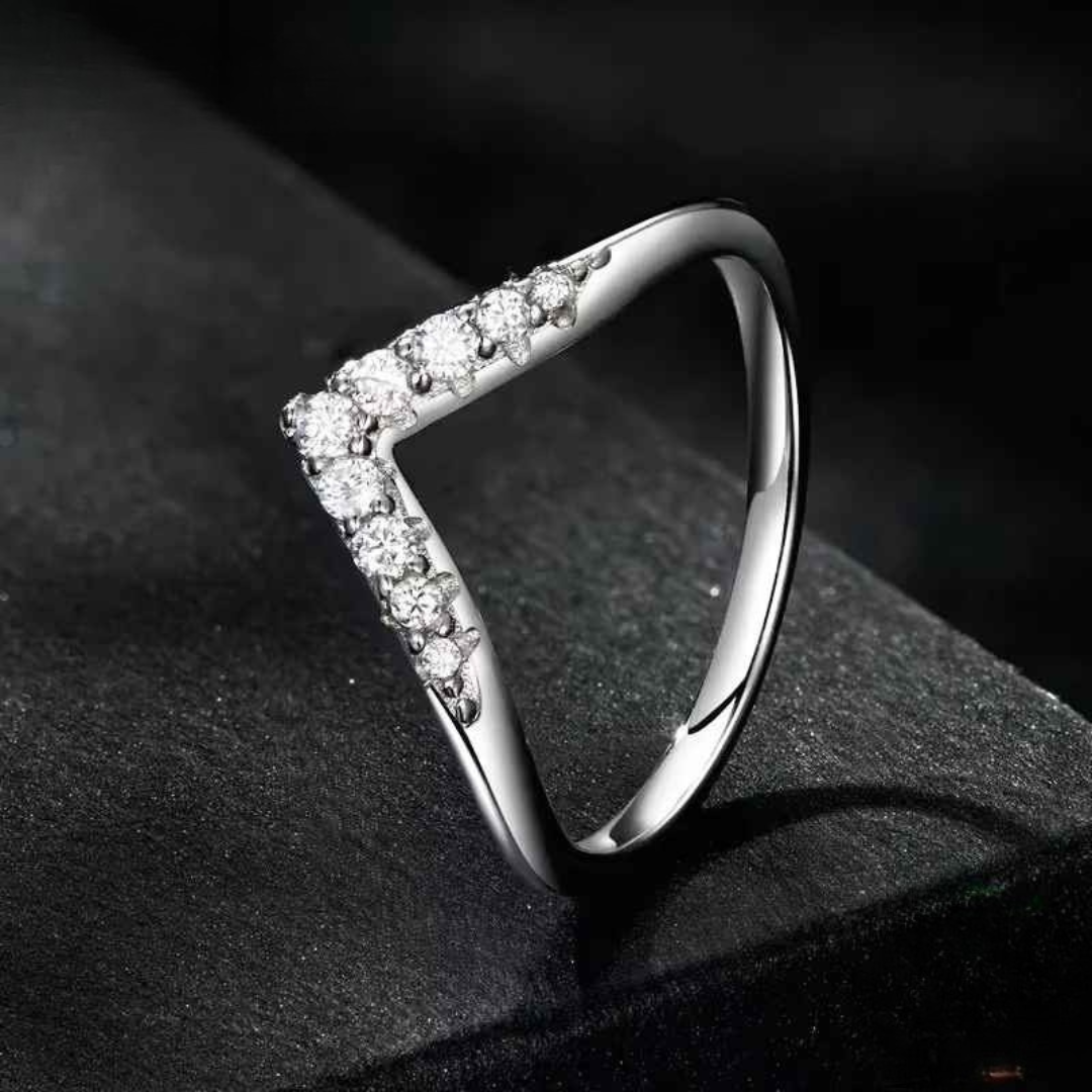 Seu design em formato de V é elegante e versátil, perfeito para usar sozinho ou combinado com outros anéis, ideal para momentos especiais ou para o dia a dia.