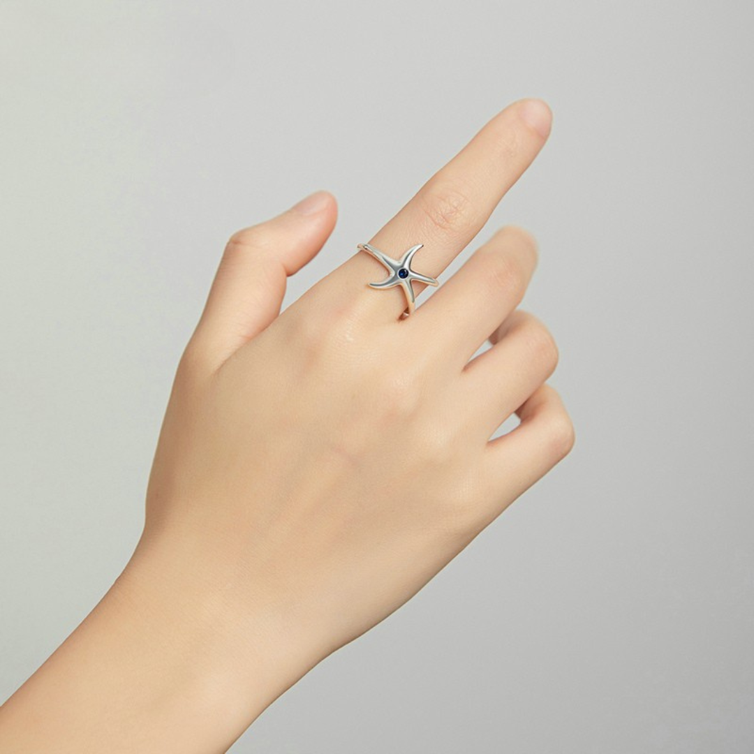🔹 Anel Estrela do Mar Prata 925 – Encanto do Oceano em Forma de Joia