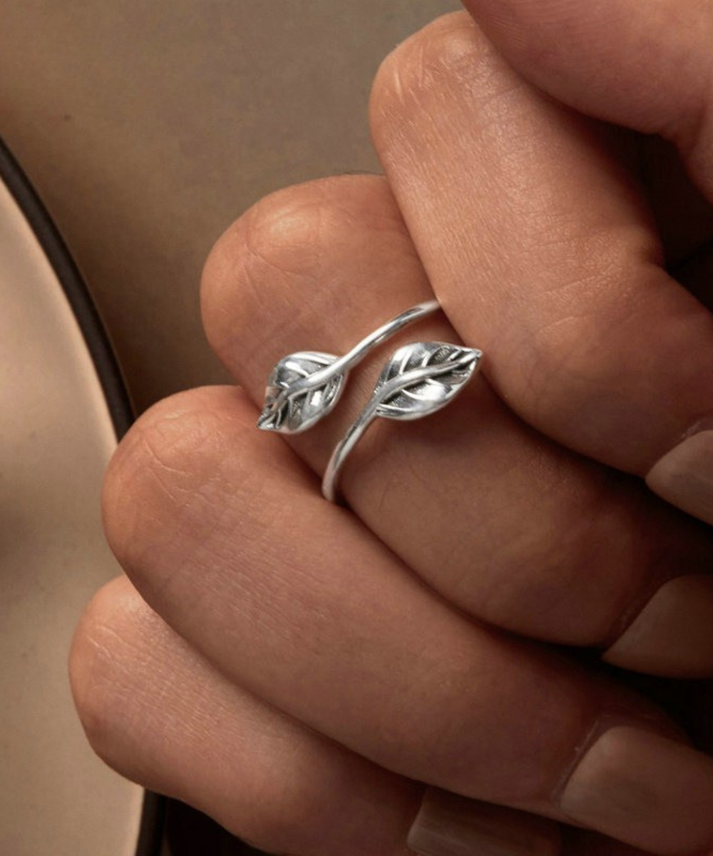 🔹 Anel Feminino Prata 925 Folhas – Ajustável e Natural