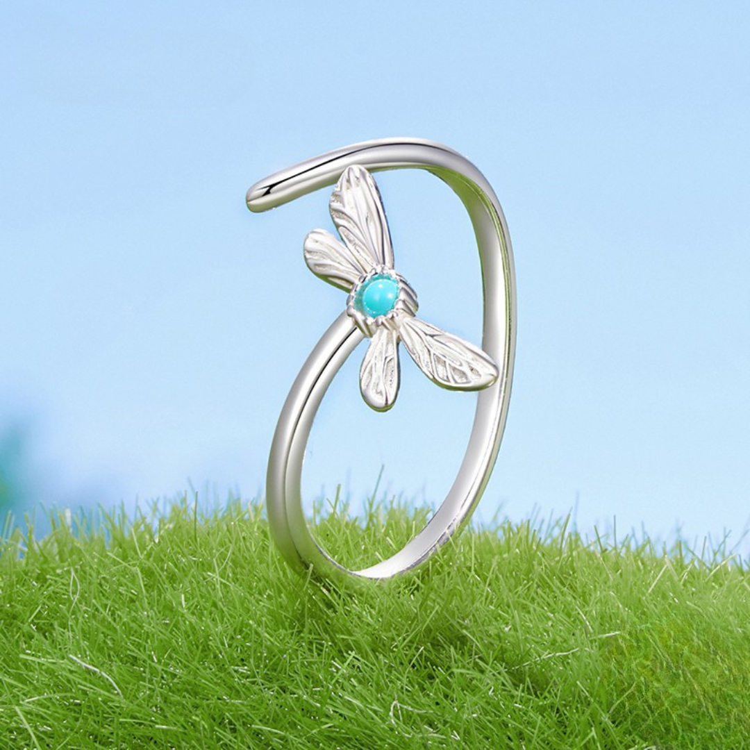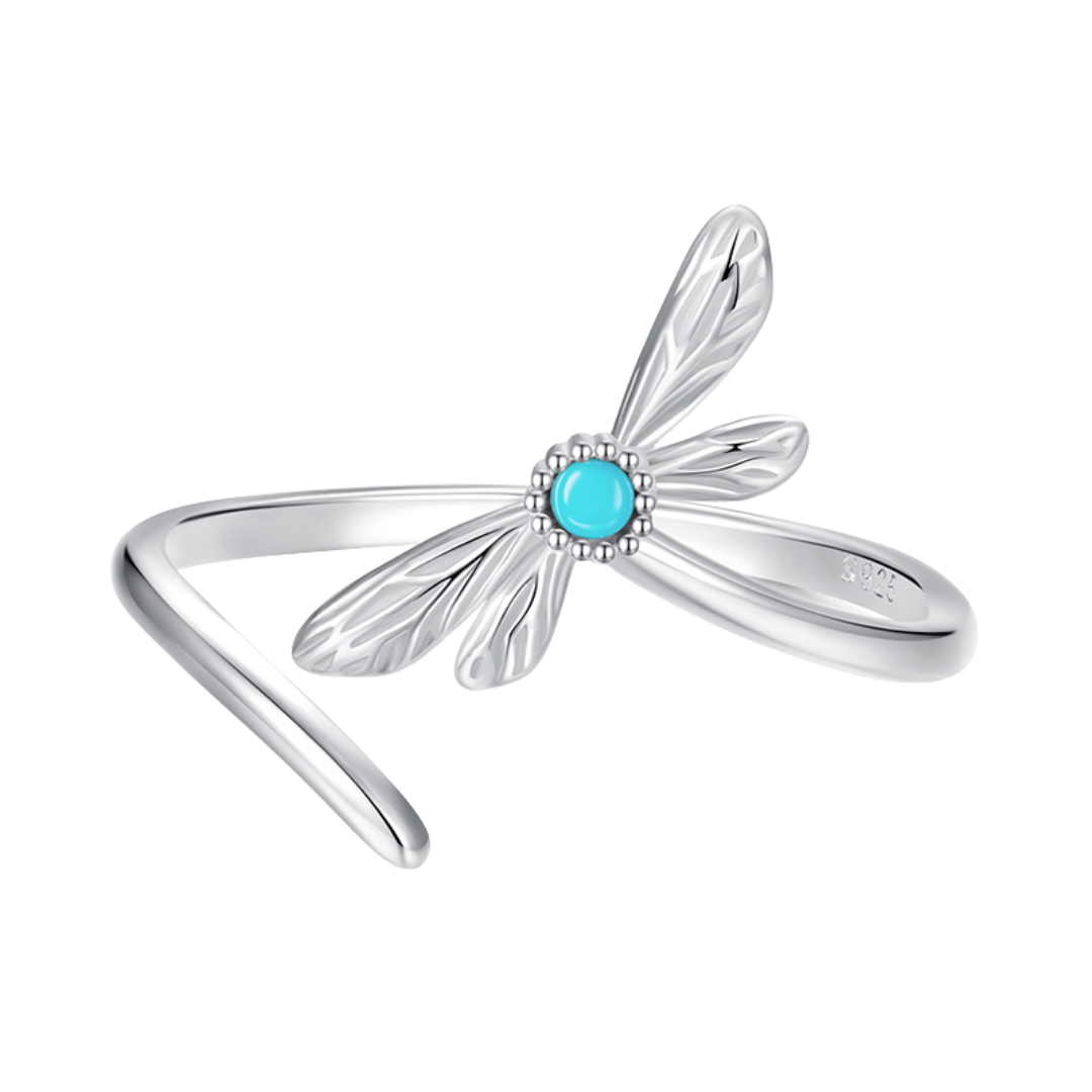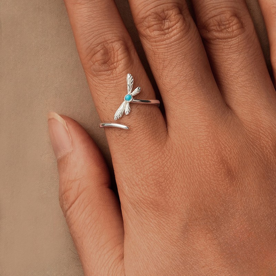 Delicado e simbólico, este anel traz uma libélula com pedra turquesa no centro — representando leveza, renovação e proteção. Ideal para quem valoriza significado nos mínimos detalhes.