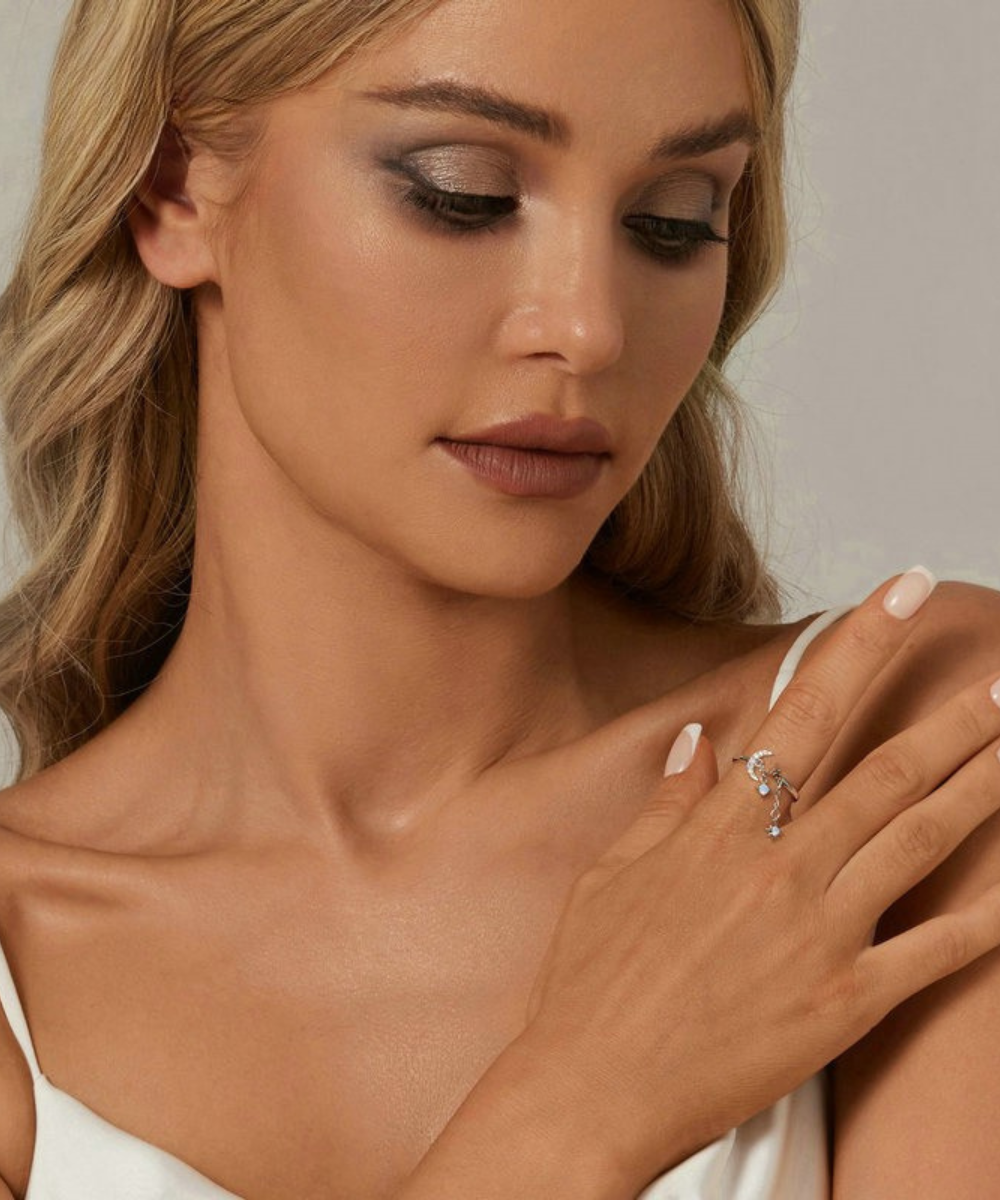 Perfeito para quem carrega o céu no coração, este anel combina delicadeza e simbolismo em cada detalhe — um toque sutil de universo nas mãos.