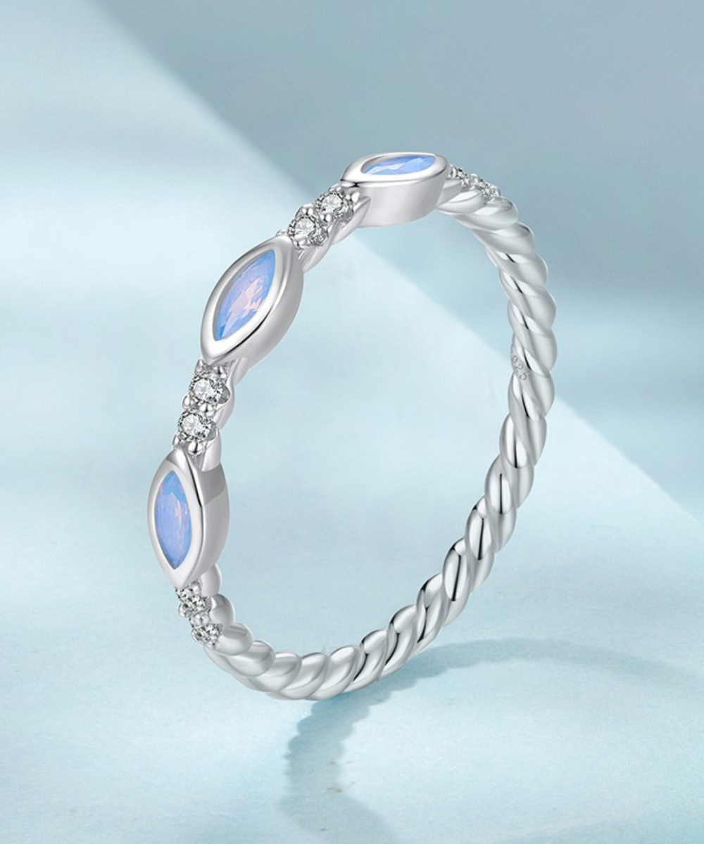 Este anel delicado e sofisticado combina o brilho etéreo da opala branca com um design elegante de formas ovais, trazendo leveza e harmonia para quem o usa. As pedras opalinas refletem suavemente a luz, remetendo à neblina da manhã e aos encantos sutis da natureza.