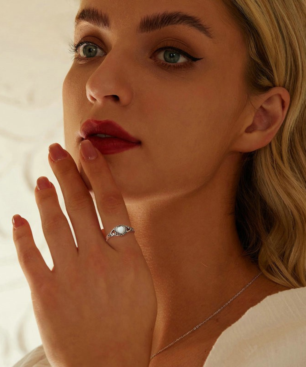 🔹 Anel Feminino Prata 925 Vintage Opala Coração – Estilo Boho e Romântico
