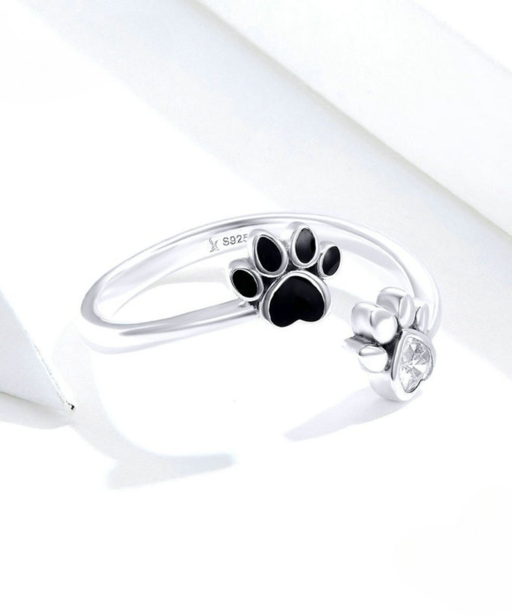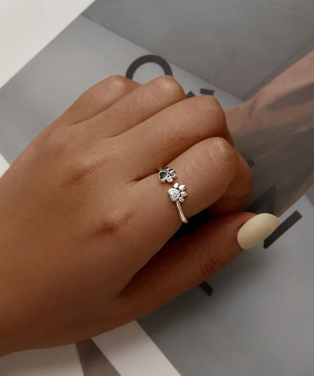 Um tributo delicado e cheio de significado para quem carrega o amor pelos pets no coração! Este anel ajustável em Prata 925 apresenta duas patinhas opostas: uma com zircĂ´nia brilhante e outra com acabamento esmaltado preto, simbolizando o equilĂbrio perfeito entre carinho e lealdade.