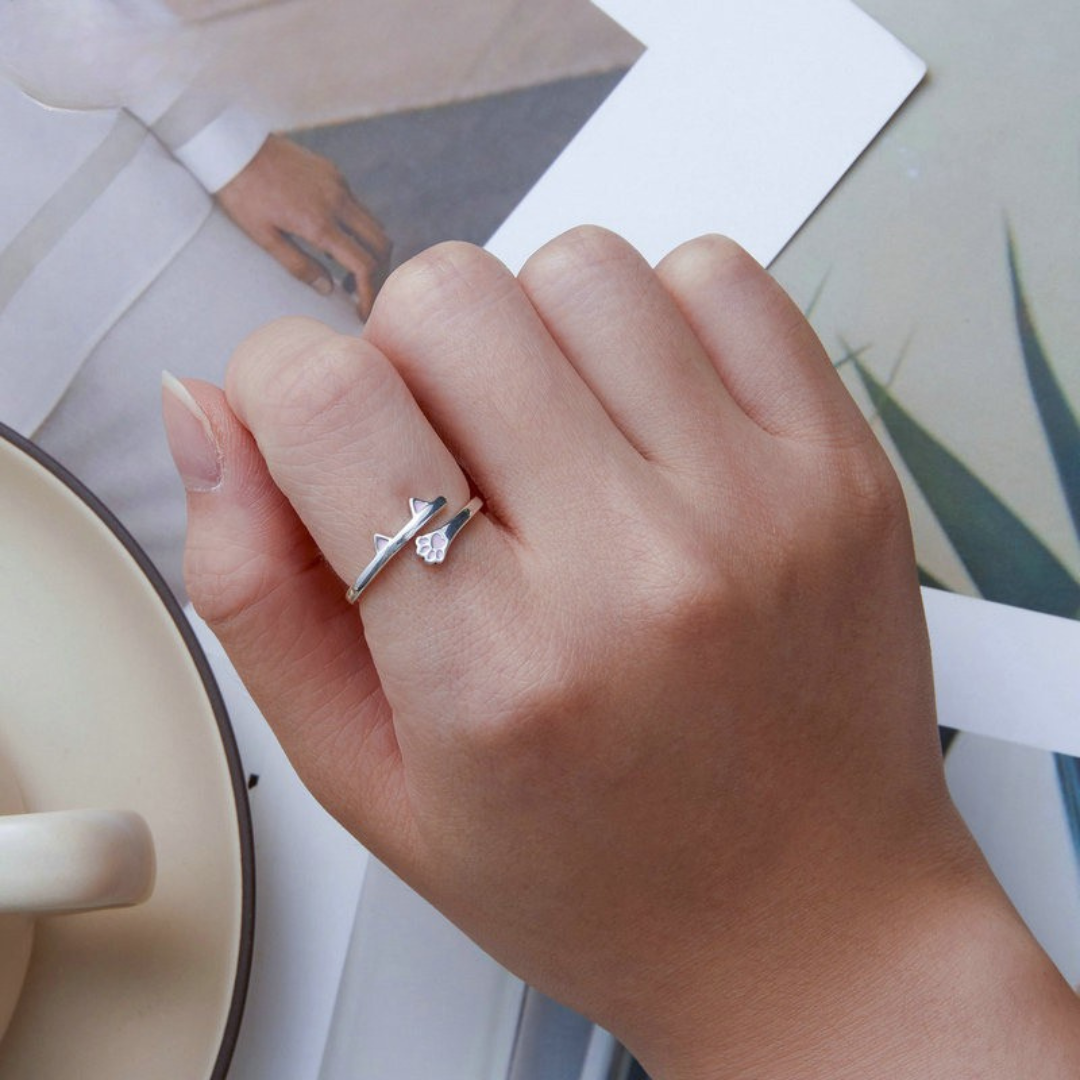 🔹 Anel Patinha Prata 925 – Amor e Carinho Animal