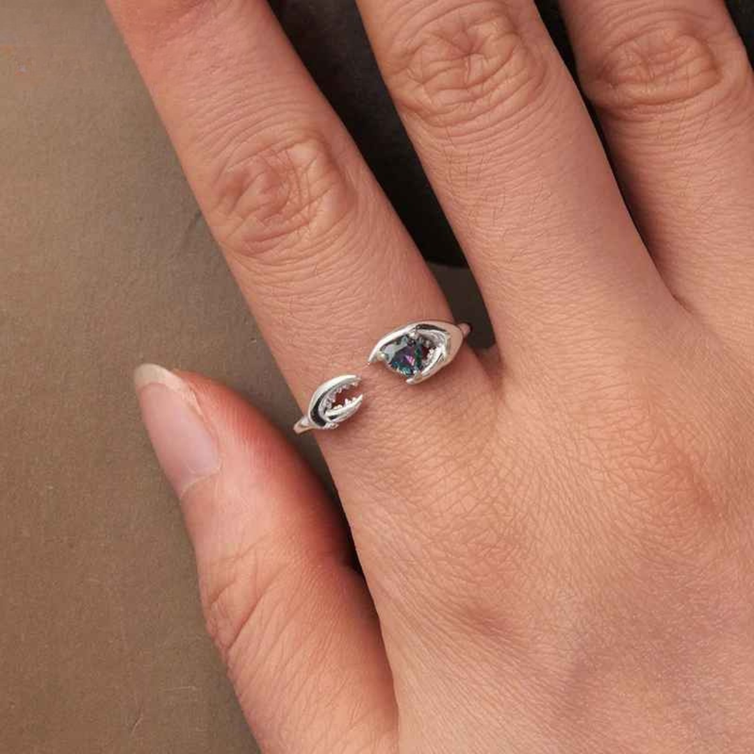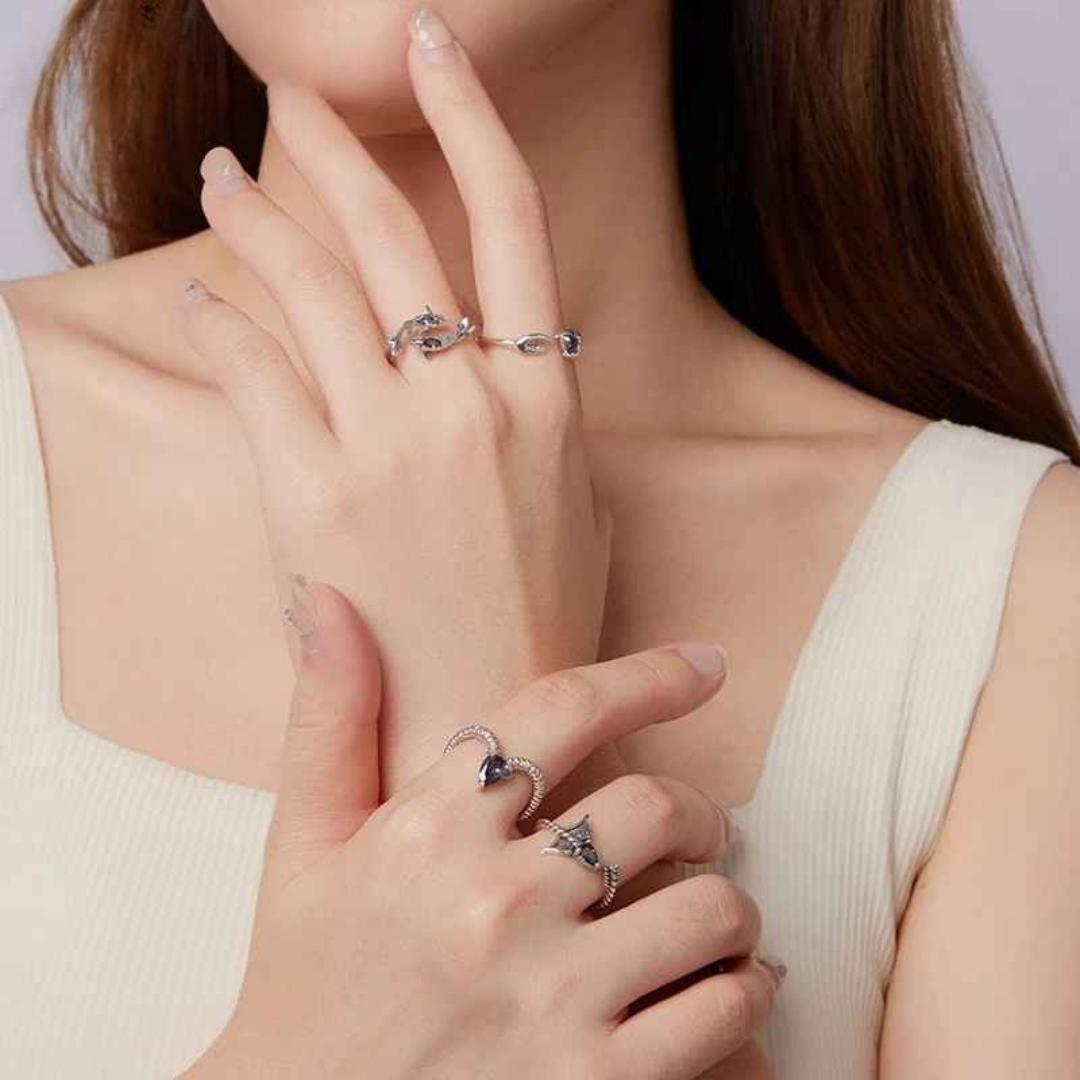 Anel feminino em Prata 925 legítima com design aberto, inspirado nos signos do zodíaco e detalhes em pedra zircônia multicolorida.