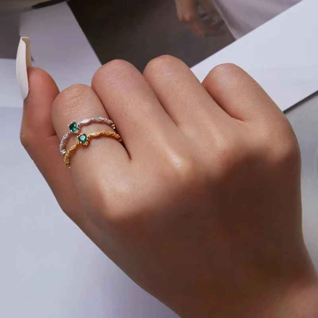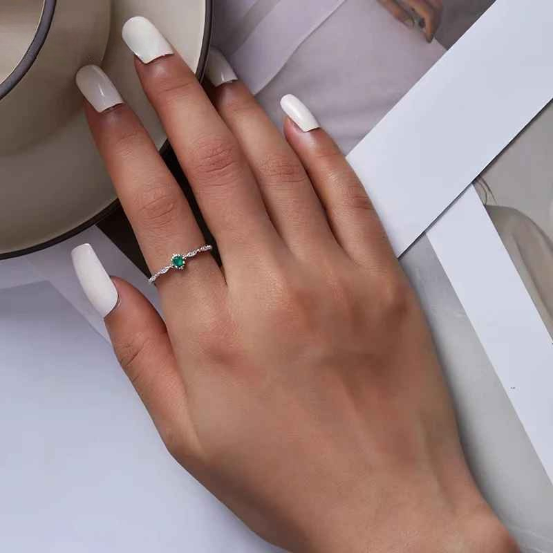 💍 Anel Feminino Prata 925 com Zircônia Verde – Delicadeza e Sofisticação