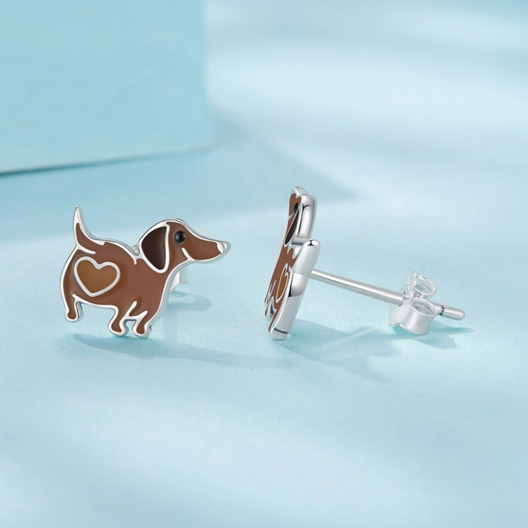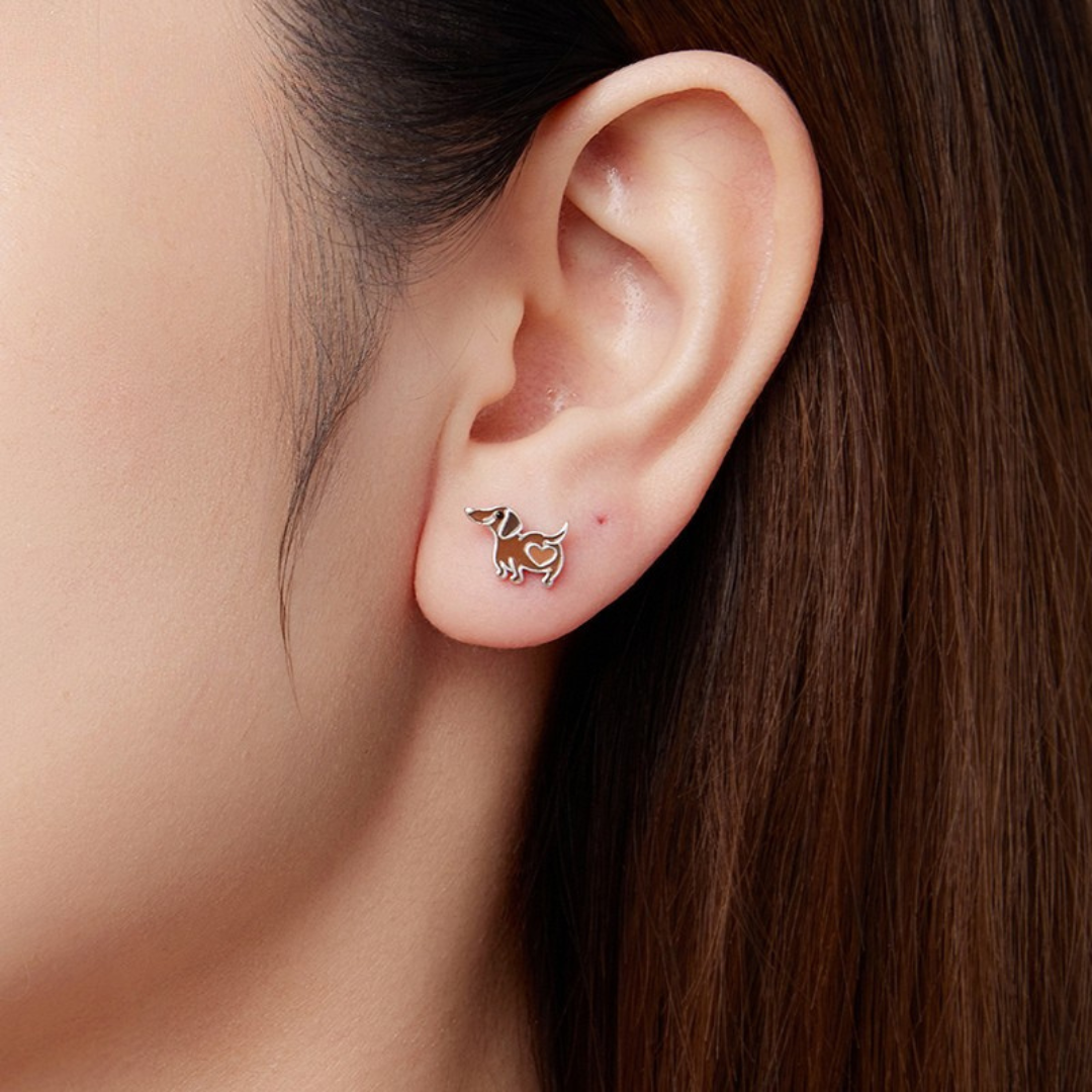 Fofo, criativo e cheio de personalidade, esse brinco em formato de cachorro com detalhe de coração é feito em prata 925 com aplicação de esmalte e acabamento oxidado. Um presente adorável para quem ama pets e acessórios delicados!