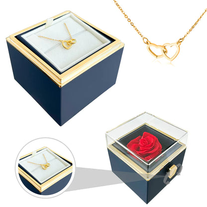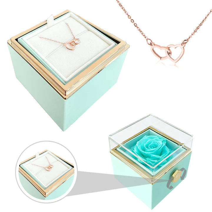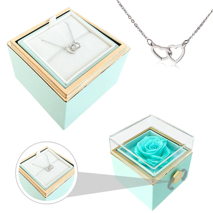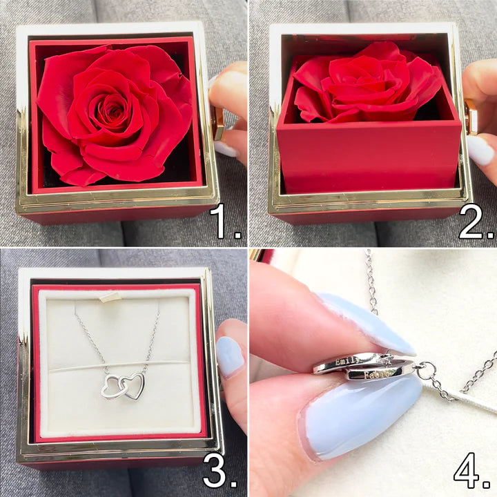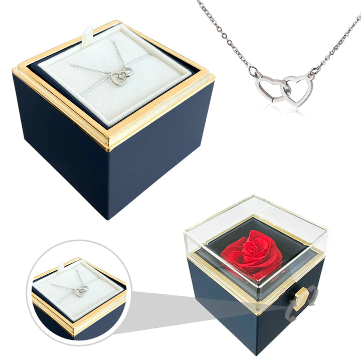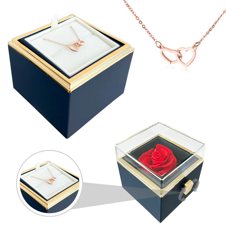 Caixa Rotativa com Rosa Eterna & Colar Gravado com Nomes