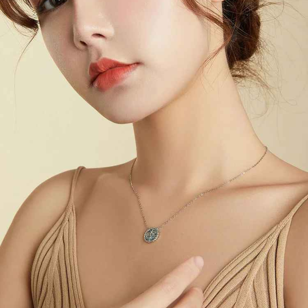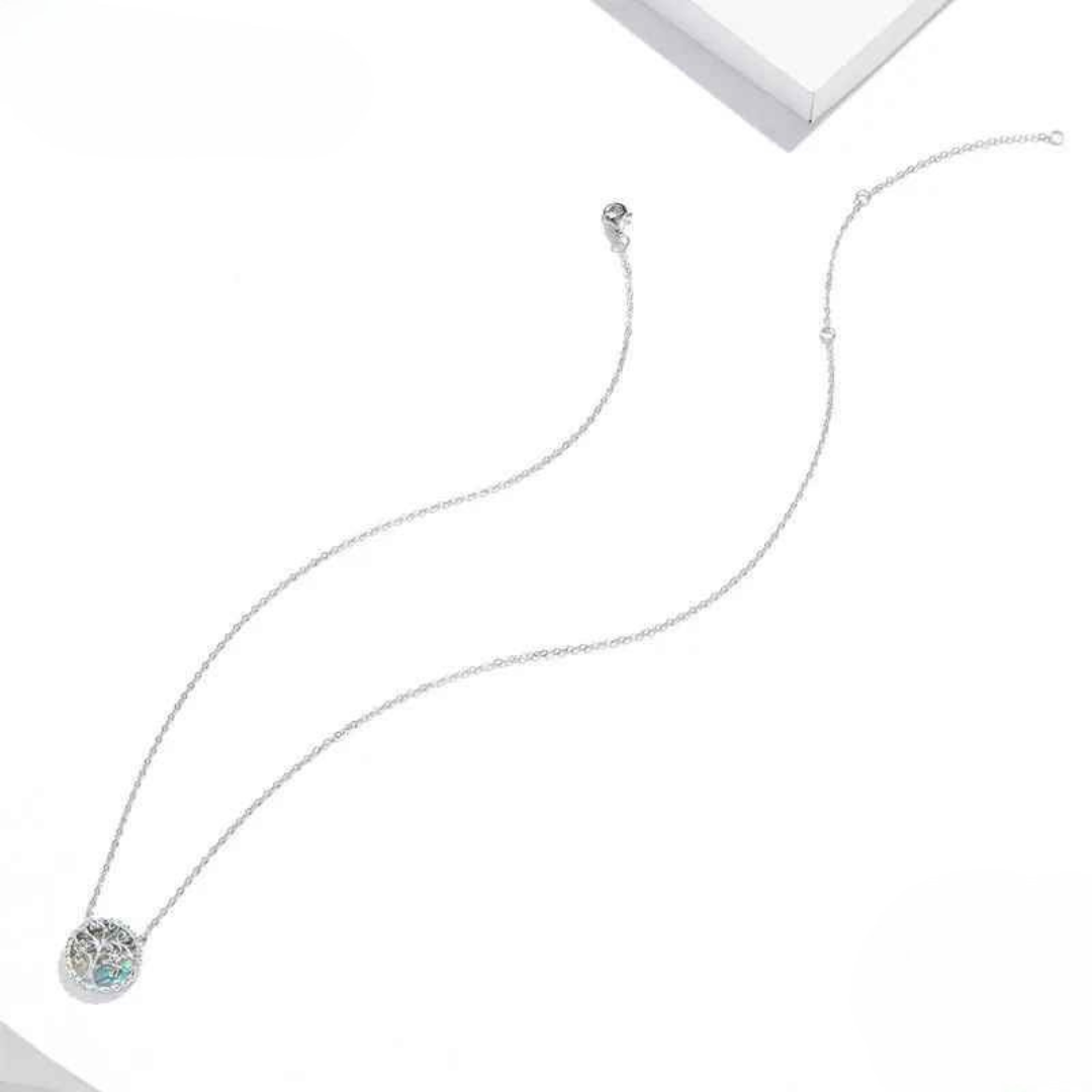 Colar delicado em prata legítima 925 com pingente redondo que traz o símbolo da Árvore da Vida: força, equilíbrio e renovação.
