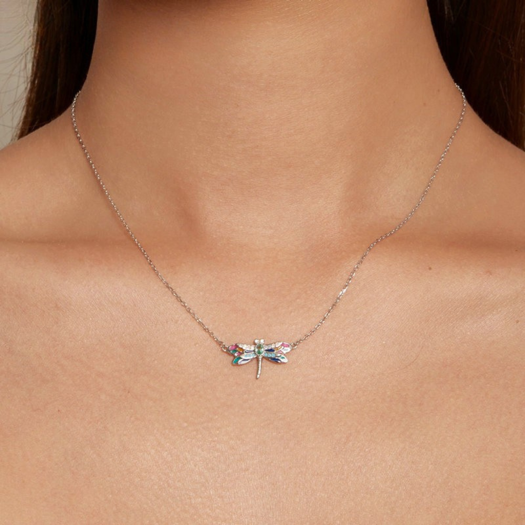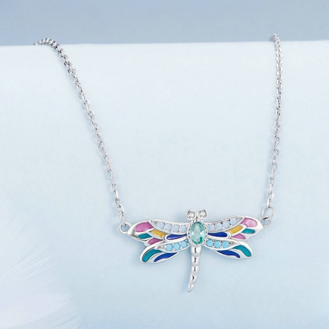 🔹 Colar Libélula Colorida Prata 925 – Encanto da Natureza com Toque de Cor