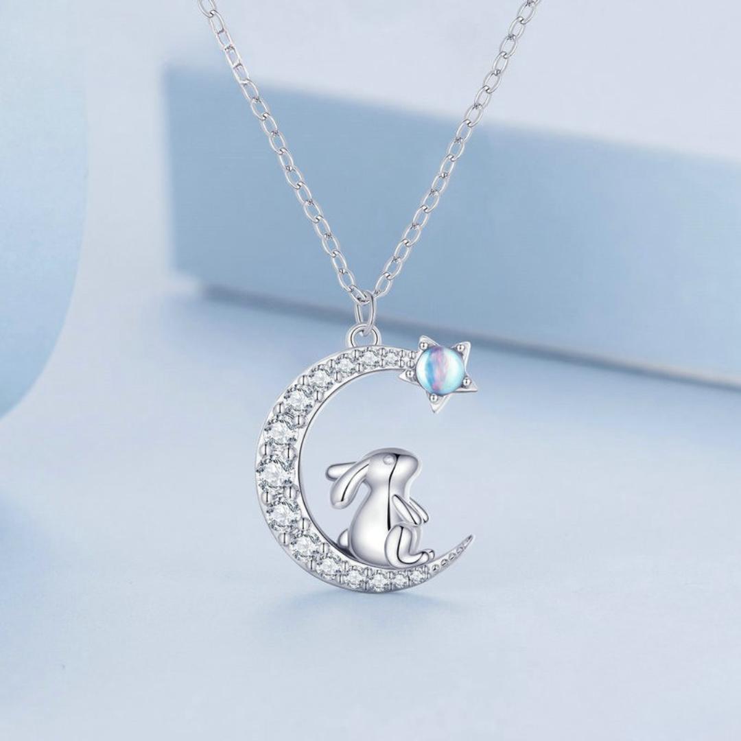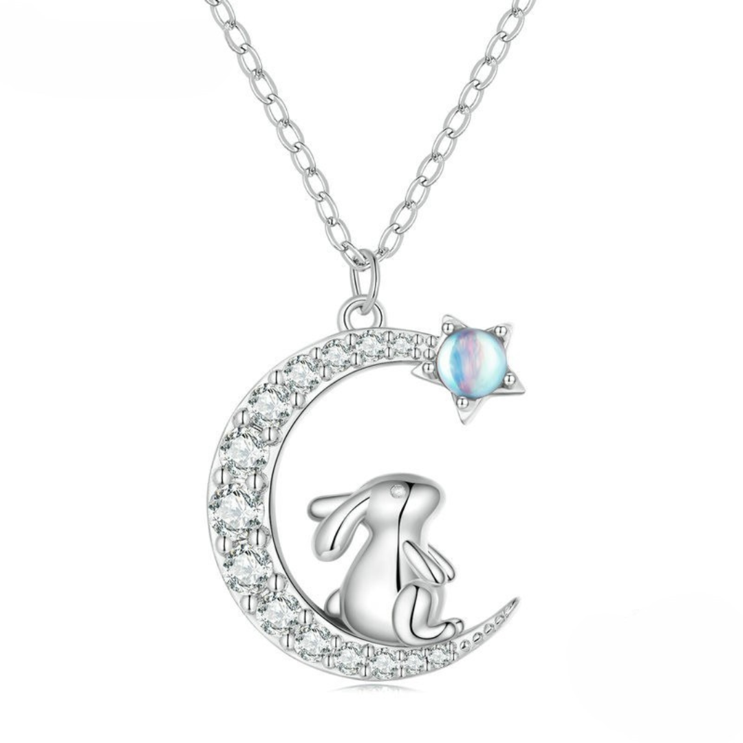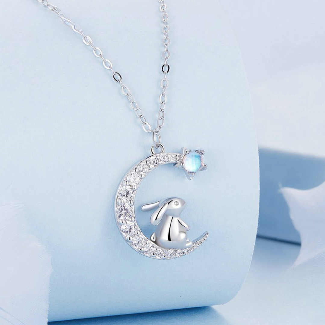 🔹 Colar Lua & Coelho em Prata 925 – Um Desejo Silencioso ao Céu