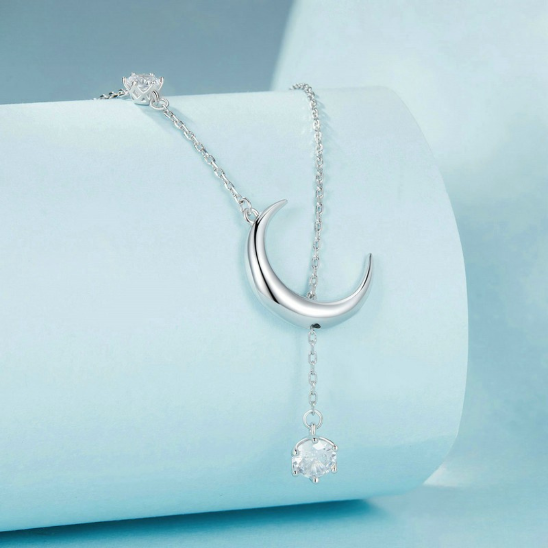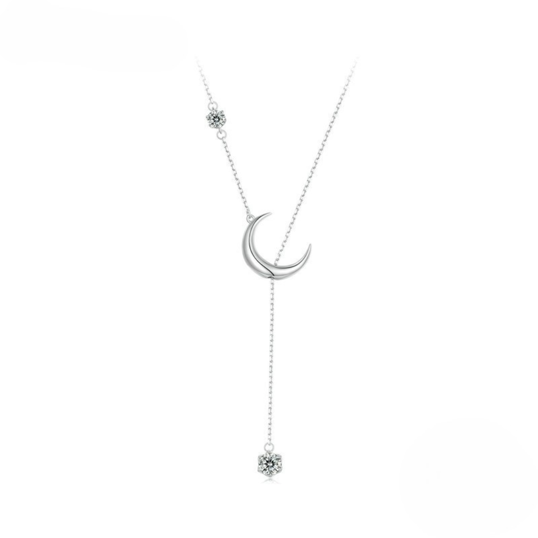 ✨ Design em formato Y com pingente de lua e zircônia brilhante