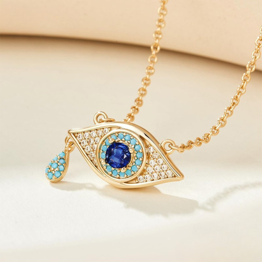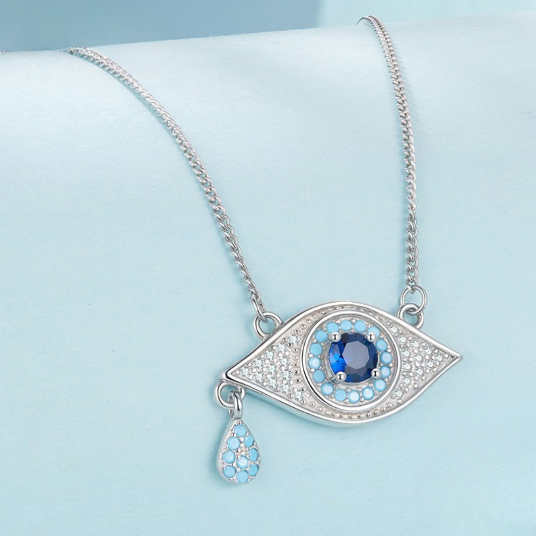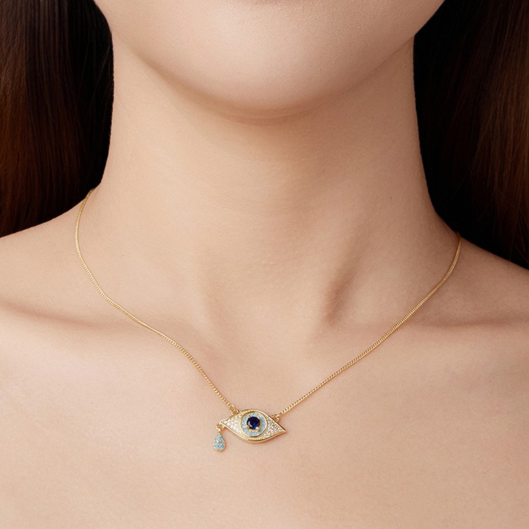 Este colar é mais que um acessório: é um amuleto de proteção. Com design refinado, combina o símbolo do olho grego com uma delicada lágrima pendente, criando uma peça sofisticada e cheia de significado.