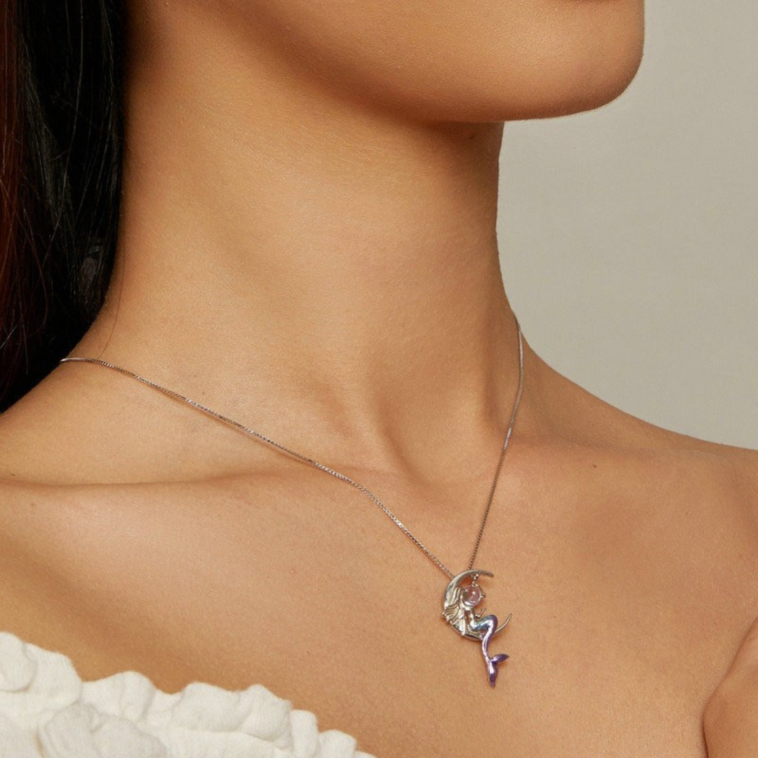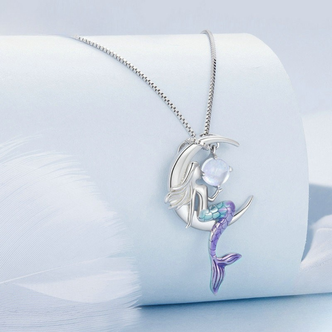 Inspirado na beleza do oceano e na magia da lua, este colar traz uma sereia elegante repousando sobre uma meia-lua, com detalhes delicados que remetem à fantasia e ao poder feminino. Uma peça perfeita para mulheres que se conectam com a força da natureza e da intuição.