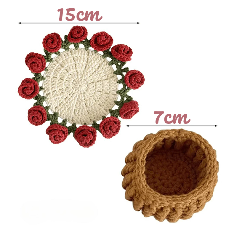 Um Porta-Copos que se transforma em um mini buquê fofo quando não está em uso. 🧶✨ Perfeito para deixar seu cantinho do café mais organizado, aconchegante e cheio de charme.