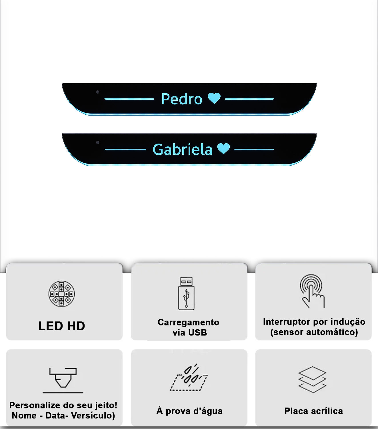 Você escolhe o que vai brilhar na entrada do carro. Pedro ♥ Gabriela? Feito!